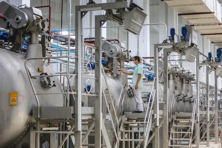 在元首集團針織服裝產業(yè)園,引人注目的不僅是產業(yè)變革和調整,更有智能化升級后的質量提升。其中,面料印染作為服裝生產研發(fā)的關鍵環(huán)節(jié),更能體現(xiàn)出企業(yè)科技創(chuàng)新實力和綠色發(fā)展水平,也是激活新舊動能轉換的“主引擎”。